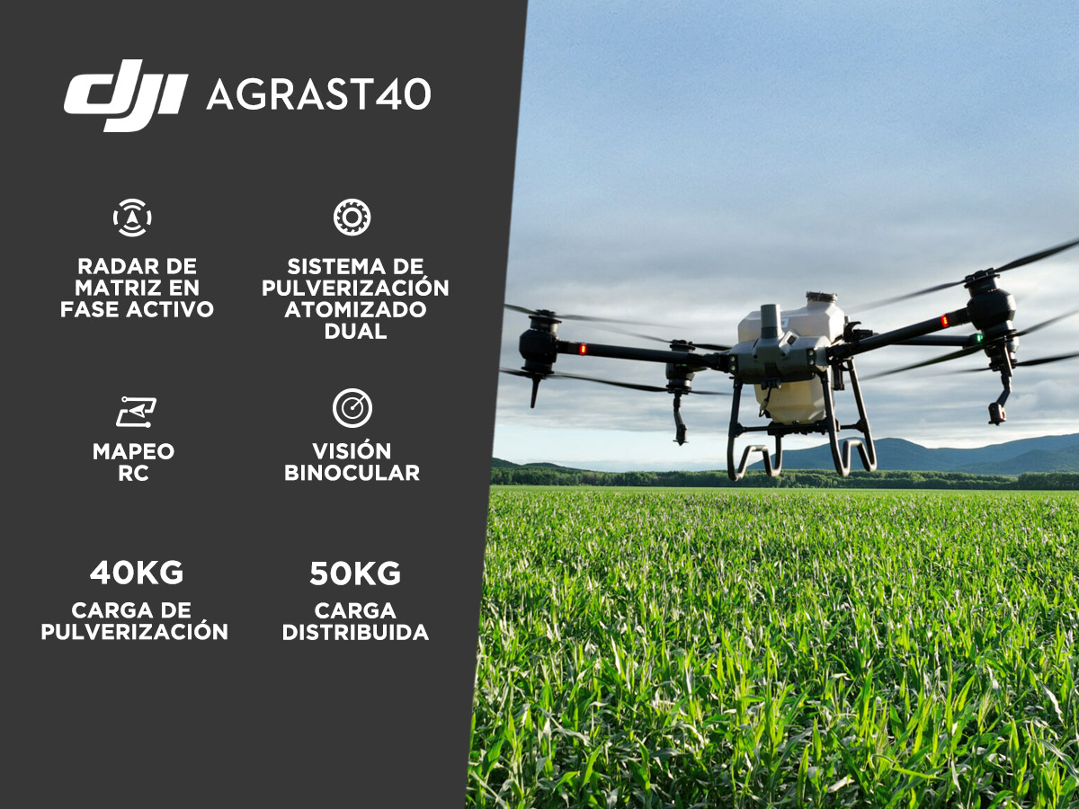 Con el Drone DJI Agras T40, lleva tu agricultura al siguiente nivel con la tecnología de drones más avanzada. Su diseño de doble rotor coaxial permite una carga máxima de 50 kg para dispersión y 40 kg para pulverización, maximizando la eficiencia de cada vuelo. Equipado con sistema de doble atomización para una aplicación precisa de pesticidas y un radar de detección omnidireccional de 360° que evita obstáculos, el Agras T40 es sinónimo de seguridad y rendimiento. Además, con su integración en la nube inteligente DJI y mapeo en tiempo real, obtenga un control total de su campo y optimice cada recurso. Innovación y productividad en un solo dron.