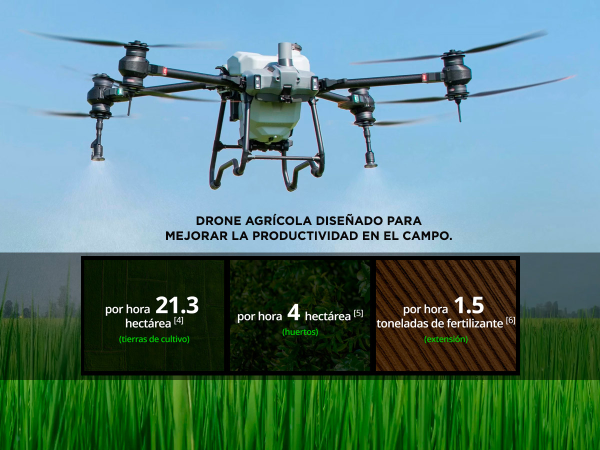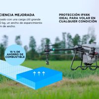 • Vuelo estacionario y pulverización con carga completa: 6 min (a 30.000 mAh y peso de despegue 101 kg)