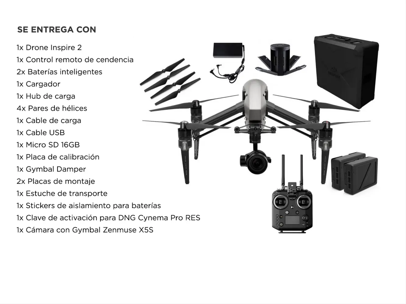 Drone Profesional DJI Inspire 2 con Camara X5S Kit Avanzado Baterías