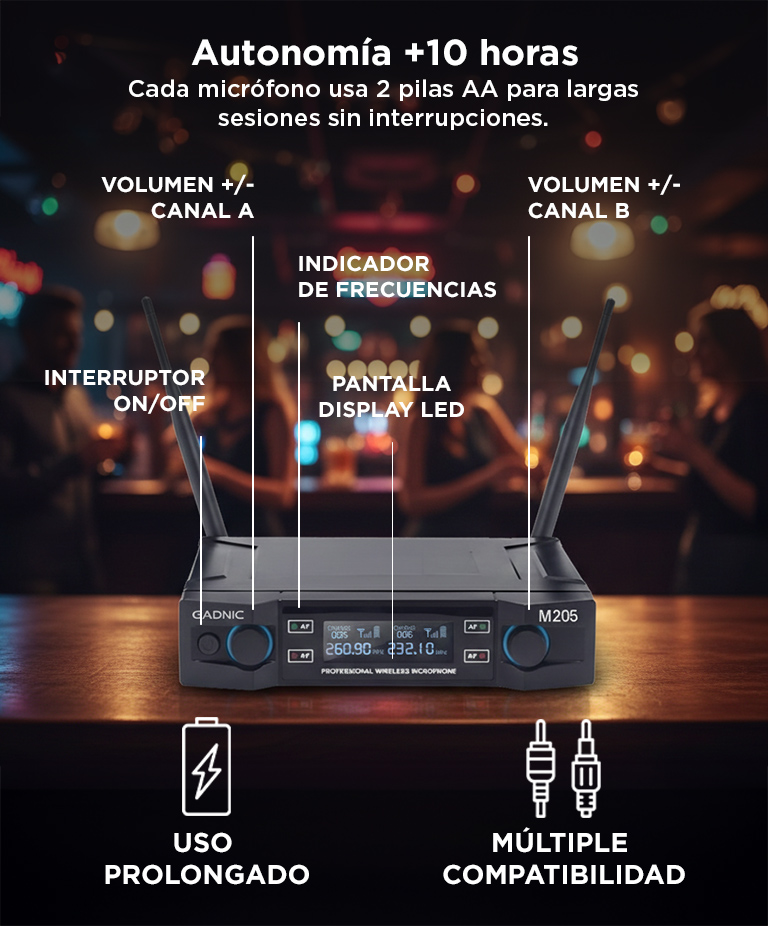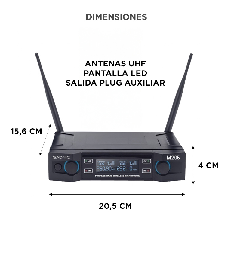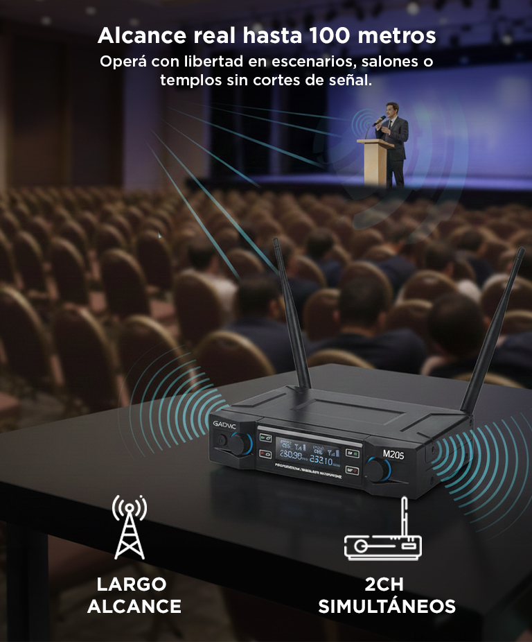 Micrófono Gadnic Inalámbrico Profesional de Mano 100mts 2CH 2Mic